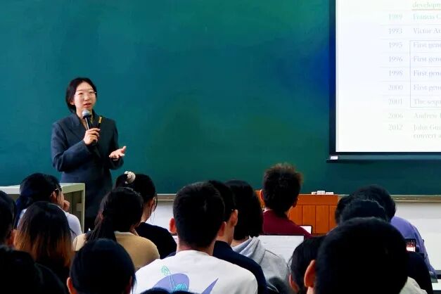 “明线”以“基因”为核心,从孟德尔豌豆实验讲到基因编辑新技术,层层递进串联起“基因的发现、传递、变化、调控”的完整脉络,帮学生搭建清晰的学科框架;“暗线”围绕模式生物展开,结合自己跨学科研究的经历,剖析果蝇、小鼠、酵母等生物在经典发现和前沿研究中的作用,让学生看到课本知识如何落地科研。课程中,王田还会融入科研伦理探讨,引导学生树立正确的科学观,“我希望学生明白,作为科研工作者,高尚的道德情操与精湛的专业技能同样重要。”