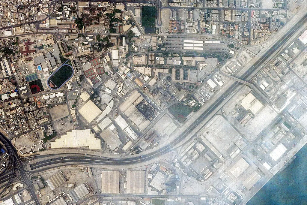 当地时间2026年3月1日,巴林麦纳麦,卫星图像显示美国第五舰队海军基地遭伊朗袭击后冒出浓烟。